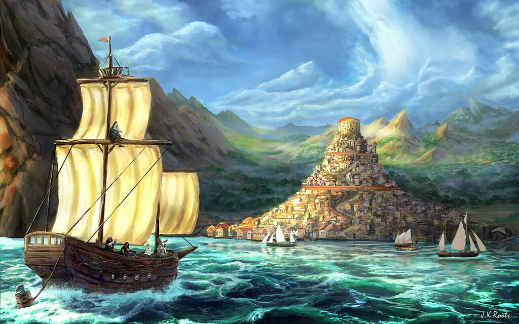 The Azure Anchor is not merely a town; it is a testament to resilience and a critical artery of commerce on the volatile Courrain Ocean. Positioned just beyond the densest, most treacherous red-silt currents of the Blood Sea, this perpetually floating city serves as the only truly neutral hub in the region. It is a necessary, precarious sanctuary for legitimate trade, smugglers, and those seeking respite from the lawless Blood Sea Isles.