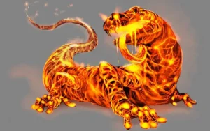 A wolf-sized red and orange amphibian who can control flames.