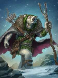 Ursir resemble anthropomorphic bears with thick fur and very powerful paws. Their appearance reflects the entire spectrum of bear-like creatures - from polar bears to black bears. They are large and muscular beings, standing about 5,5 to 8 feet tall, and possess remarkable strength regardless of their age. Ursir are known for effectively using their highly developed sense of smell to track their prey even over great distances. Additionally, their bodies are as resilient as if made of solid iron. Although their individual characteristics may vary, almost all Ursir are deeply connected to nature and wear clothing and accessories that reflect this bond. On average, Ursir reach an age of about 230 years.