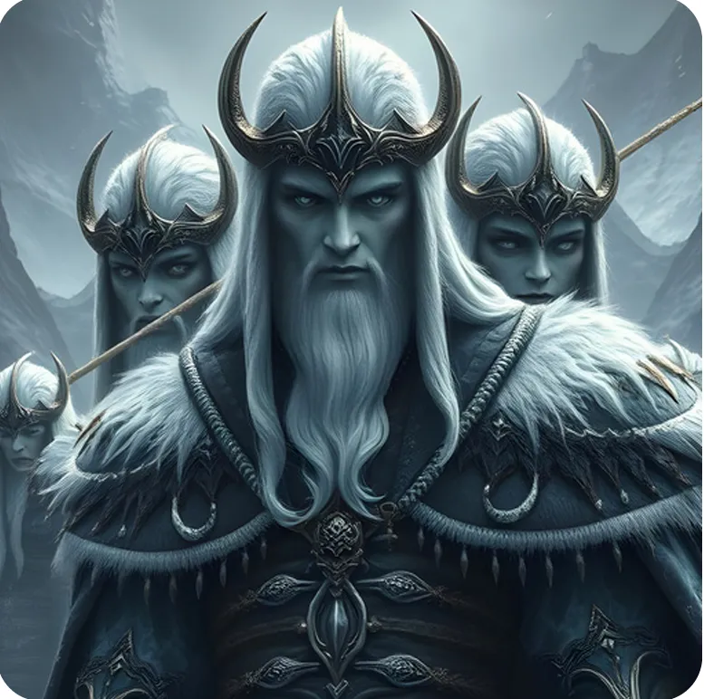 Os nascidos em Fystheim são forjados pelo gelo. Seus corpos resistem ao frio intenso, e seus olhos brancos como a neve enxergam com clareza através da névoa densa. Criados em terrenos implacáveis, possuem músculos resilientes ao cansaço, acostumados a atravessar a neve profunda.