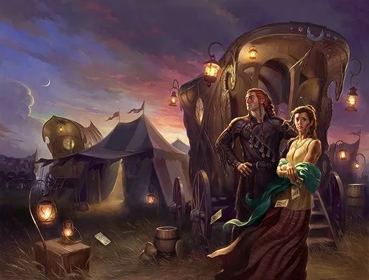 Most Vistani are dark of complexion, often with jewel-toned eye color. They are fond of bright, lavish colors and gaudy jewelry. In their blood, however, each still harbours a fragment of the curse of Strahd.