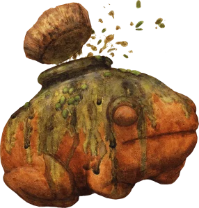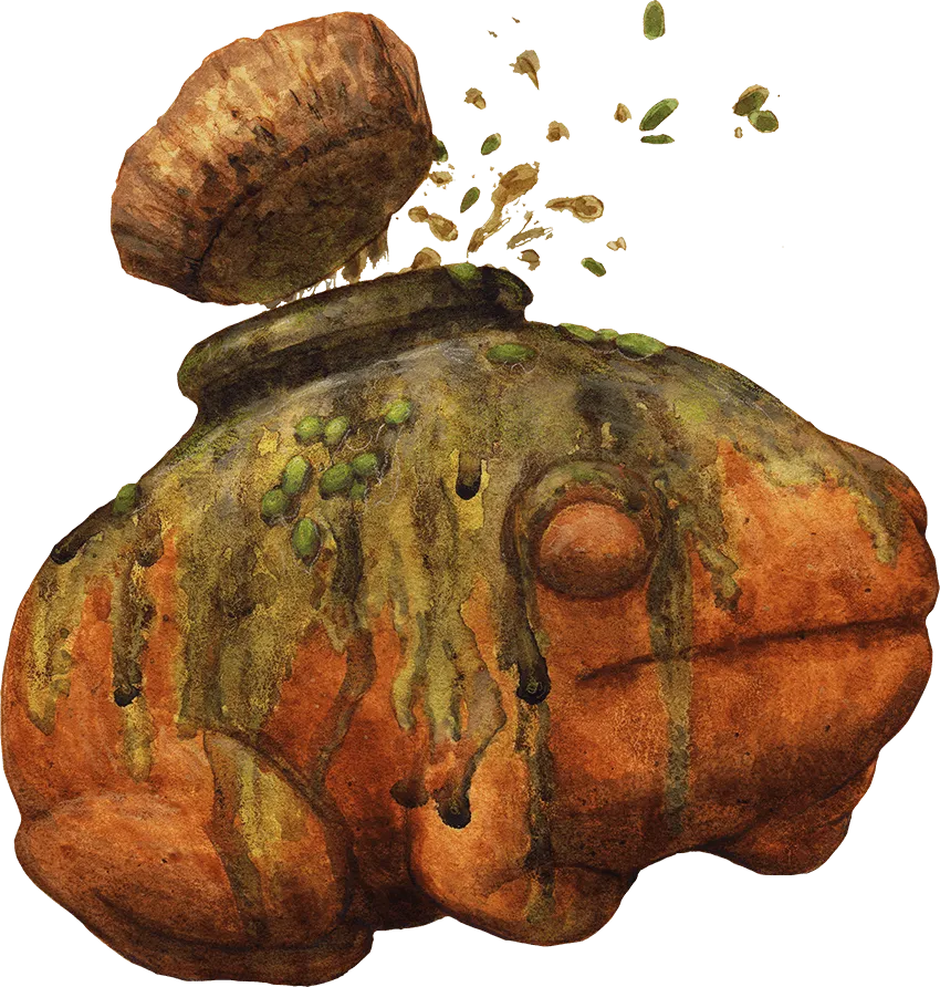 This potion is found in a clay jar shaped and painted like a large frog, with a cork stopper in its back.