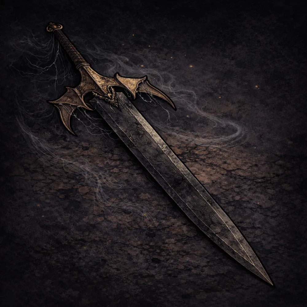Espada de metal legendario forjada mediante el aliento del dragón Domivat. Tras la muerte de su último portador, el vínculo dracónico se extinguió y la hoja quedó inerte. Actualmente funciona como un arma mundana. El metal conserva su naturaleza extraordinaria, aunque no manifiesta poder activo alguno.